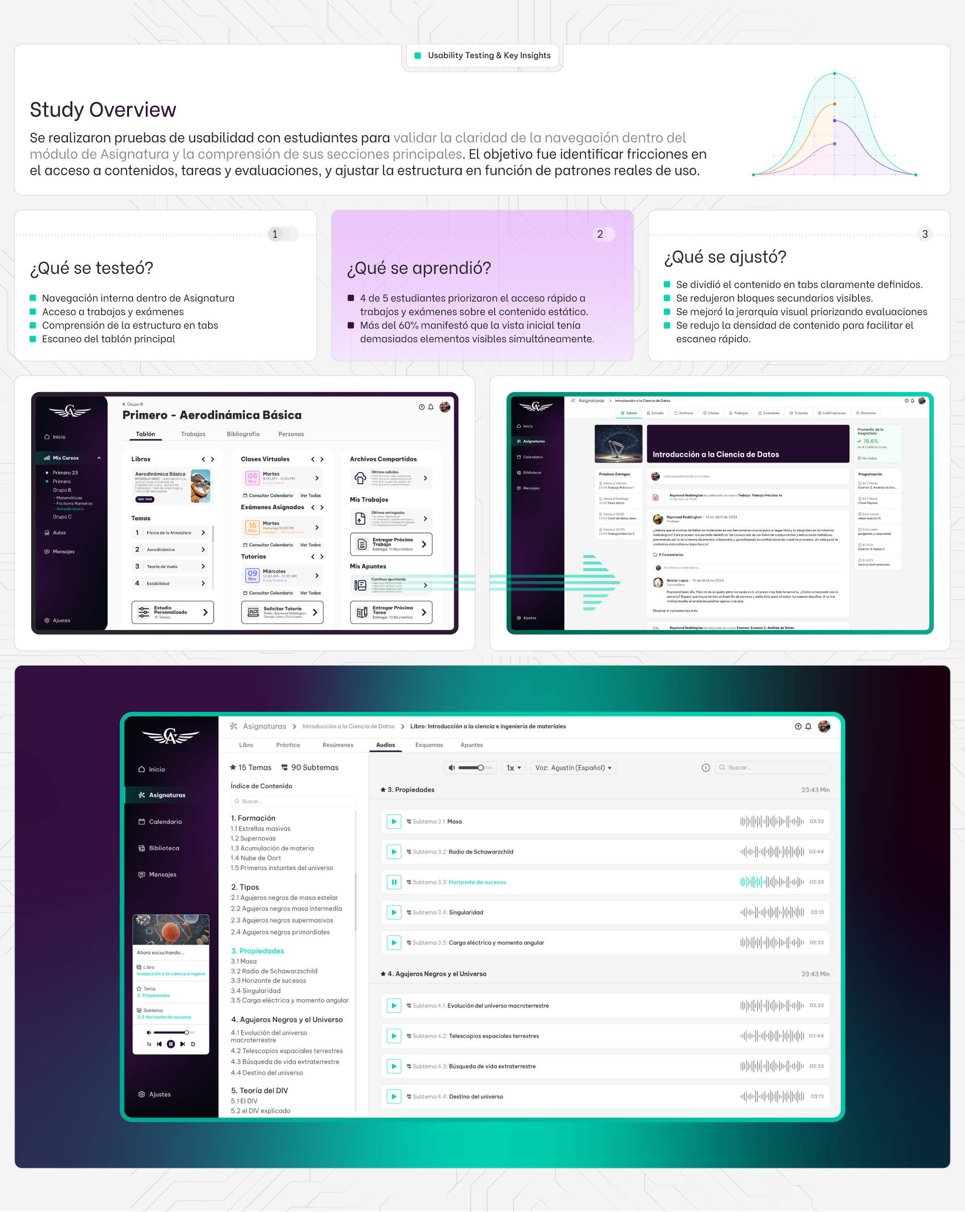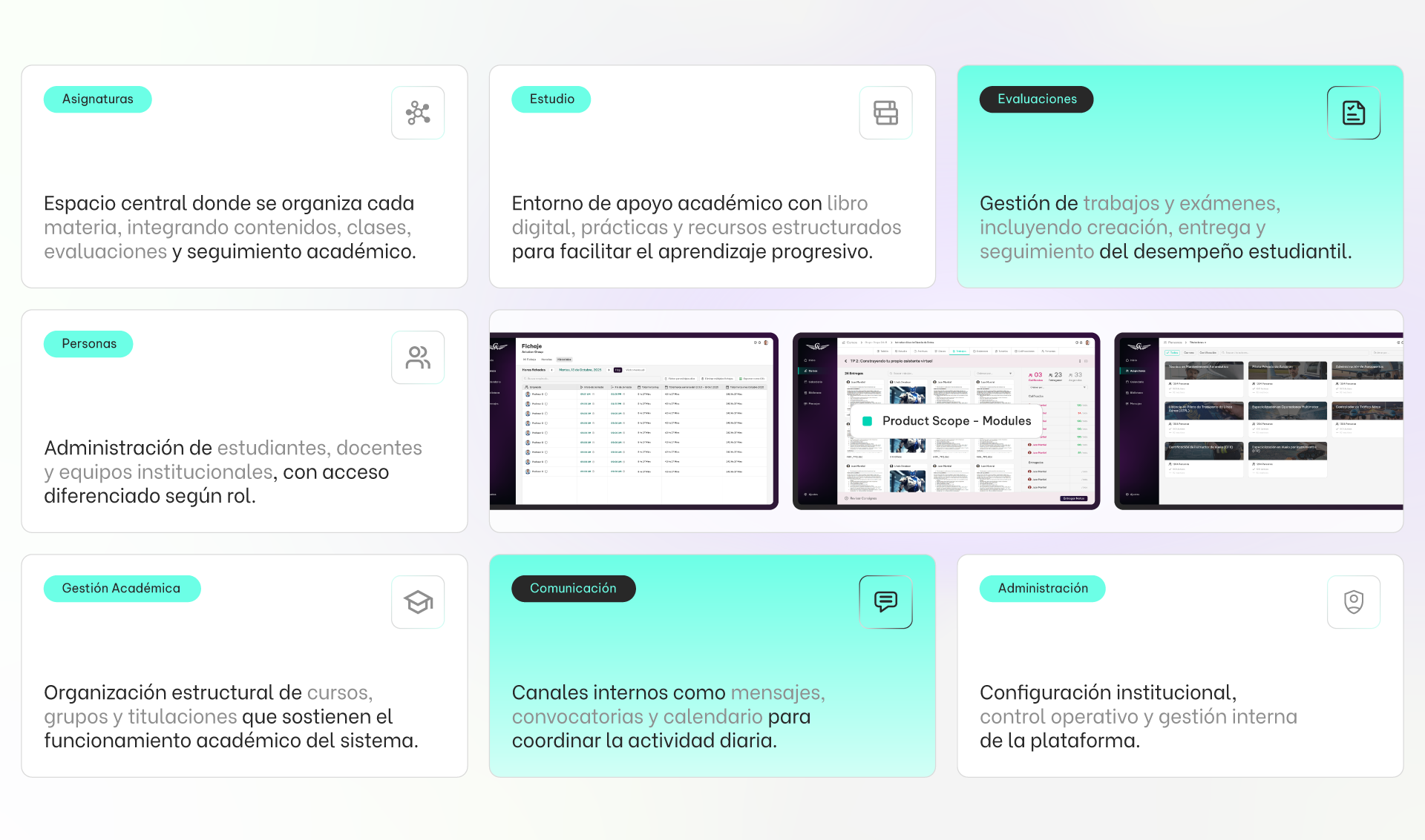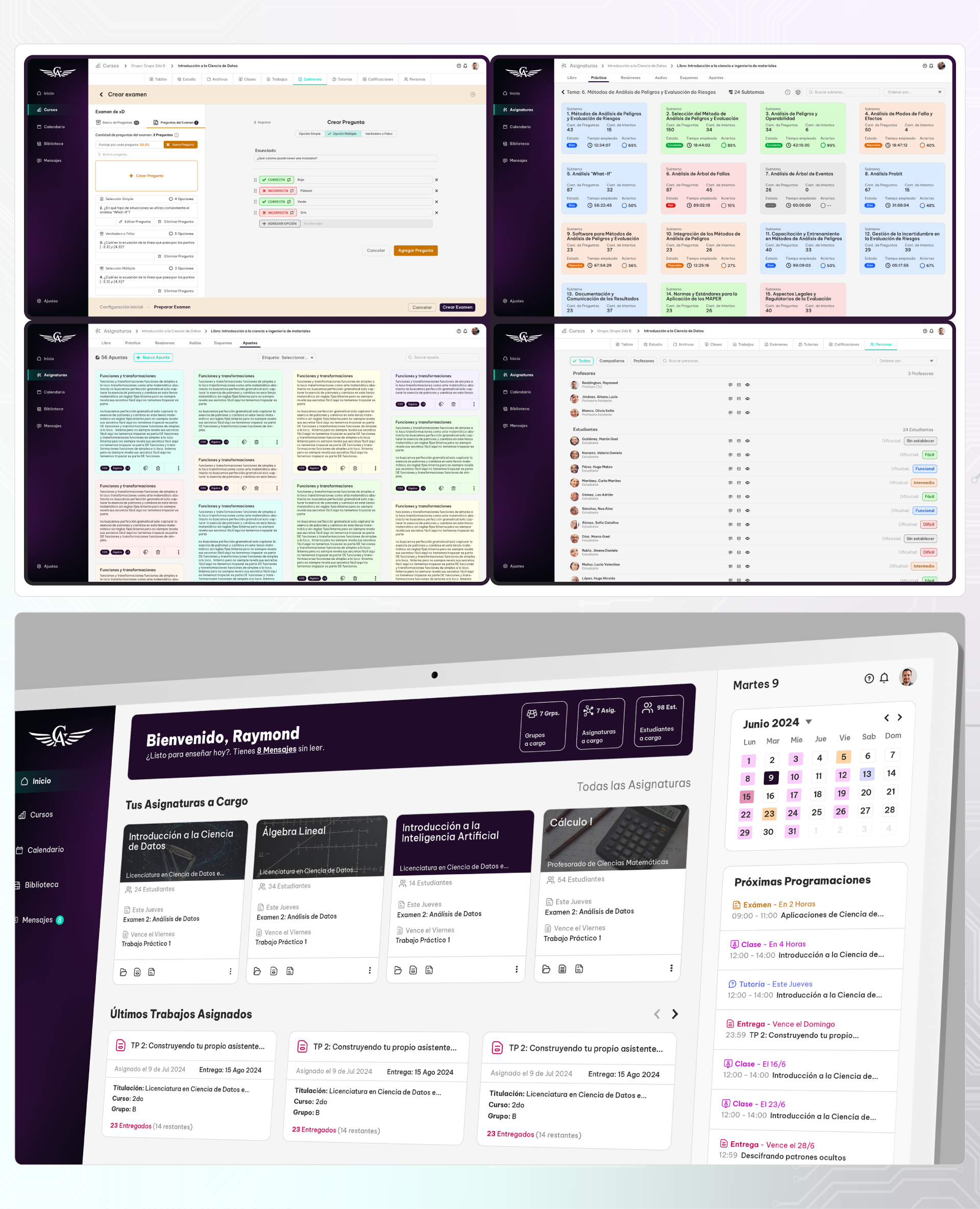 Class es una plataforma web de gestión educativa diseñada para acompañar el trabajo diario de docentes, estudiantes y equipos directivos en contextos reales de enseñanza. El producto aborda la complejidad propia de los entornos educativos: múltiples roles, gran volumen de información, tareas recurrentes y necesidades muy distintas según el perfil de usuario. El desafío principal fue diseñar una experiencia clara, consistente y escalable, capaz de sostener una gran cantidad de pantallas sin perder coherencia ni usabilidad.