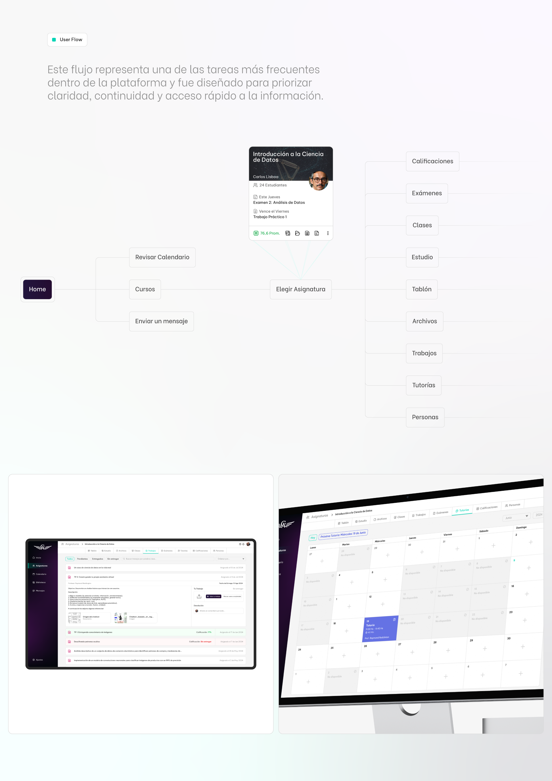 Este proyecto se enfoca especialmente en el diseño de interfaz y en la construcción de un sistema visual robusto para un producto en uso activo. A lo largo del caso se muestran decisiones de UX aplicadas a un contexto real, la evolución de pantallas y flujos clave, aprendizajes derivados de instancias de investigación y testeo, y el trabajo de UI necesario para mantener claridad y eficiencia en un sistema complejo. Class no se presenta como un ejercicio conceptual, sino como un producto diseñado para funcionar, escalar y sostenerse en el tiempo.